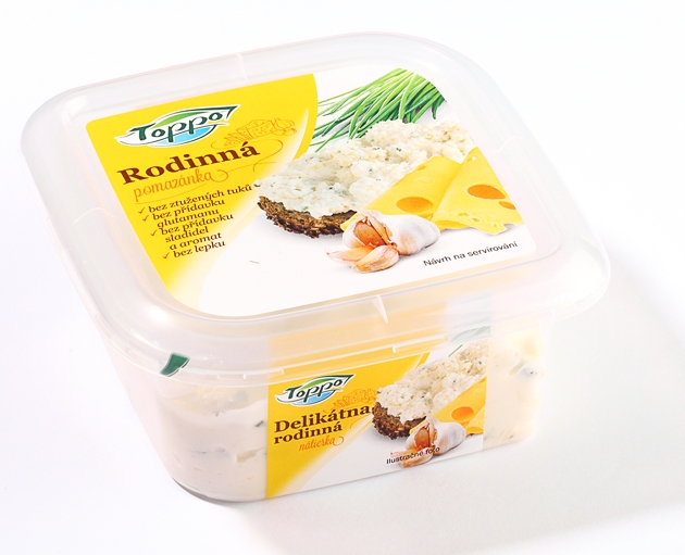 Toppo Rodinná nátierka je delikátnou kombináciou smotany, syra typu Ementál, cesnaku a najemno nakrájanej čerstvej pažítky. Môžeme ju podávať s bielym i tmavým pečivom a čerstvou zeleninou. Domáci i hostia v teplých dňoch ocenia vychladené plnené paradajky. Ako na to? Menším paradajkám odrežeme vrch, lyžicou ich zbavíme dužiny, naplníme nátierkou a vrch ozdobíme čerstvými bylinkami. Podávame na listovom šaláte.