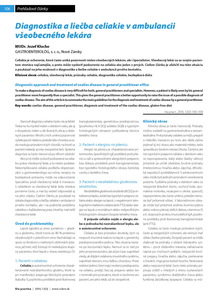28. augusta 2018Celiakia, Články, Lekár radí, Zdravie MUDr. Jozef Klucho, GASTROENTEROLÓG, s. r. o., Nové Zámky článok v PDF Náhľad na článok Tlačiť, PDF, e-mail Pre prihlásenie sa na odber nášho newslettru zadajte prosím Vašu e-mailovú adresu. Email Súhlasím so spracovaním osobných údajov