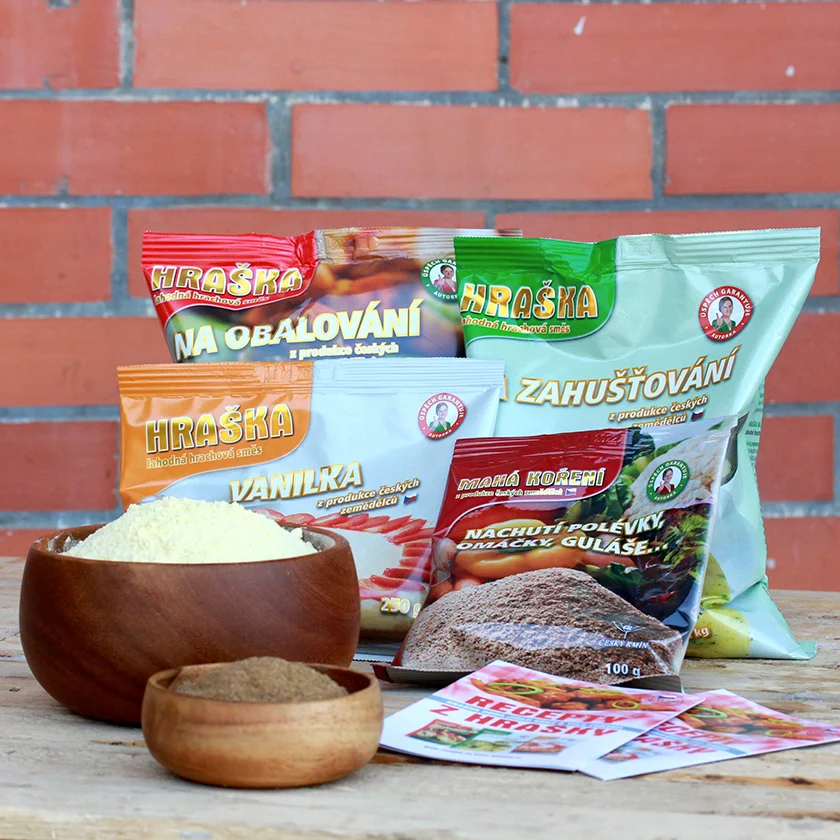 Hraška je dostupná v niekoľkých variantoch – na zahusťovanie, na obaľovanie aj v sladkej verzii s vanilkou. Nájdete ju v niektorých predajniach zdravej výživy alebo priamo na e-shope výrobcu www.hraska.cz.